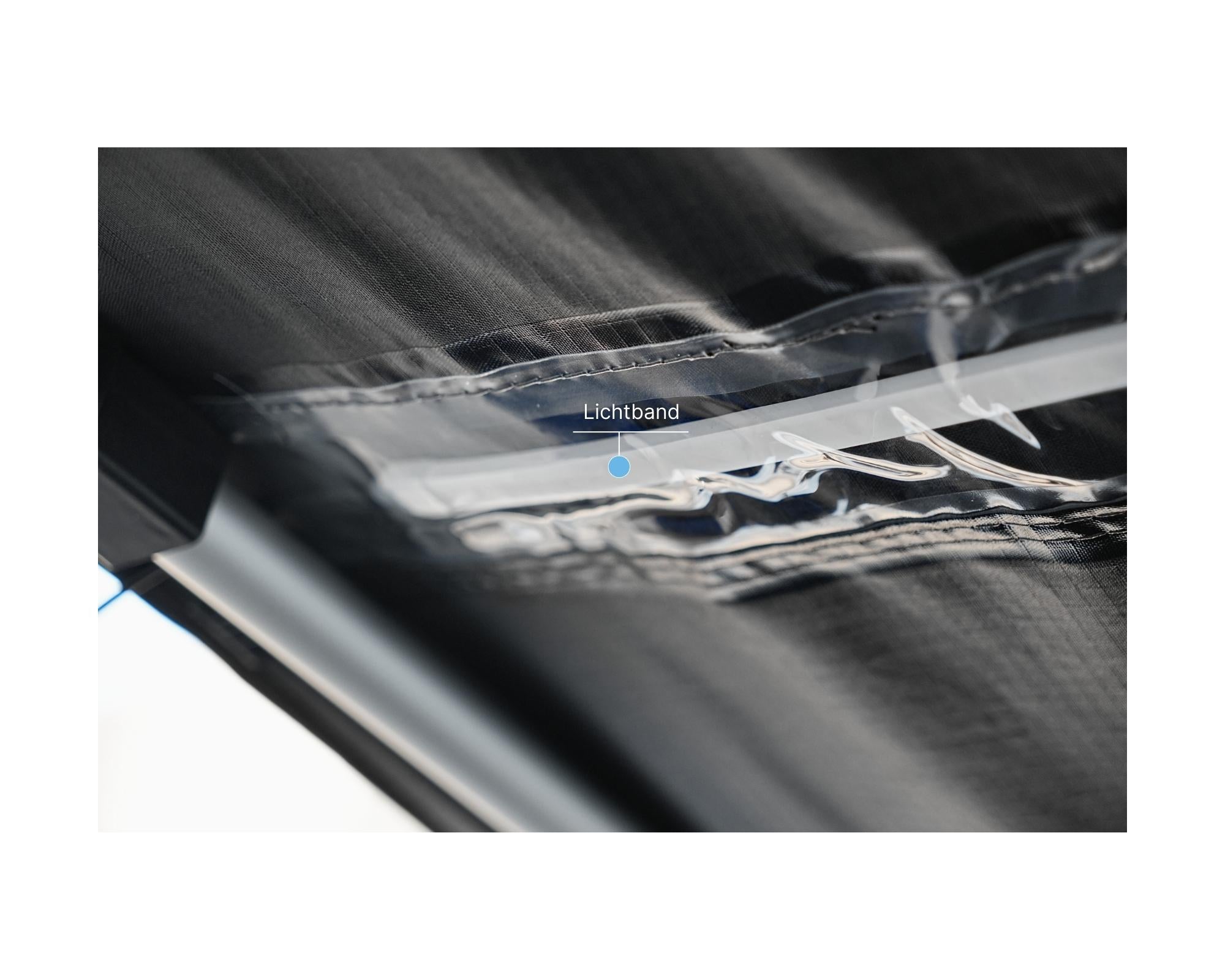 Die komaru 250 ist eine robuste Markise mit 2,5 Metern Breite – ideal für Kombi, Van oder Offroader. Sie ist wasserdicht, UV-beständig und mit einer Antischimmel-Beschichtung ausgestattet. Eine integrierte LED-Lichtleiste sorgt abends für angenehmes Licht und wird ganz einfach per Powerbank betrieben. Schnell montiert an allen gängigen Querträgern, bietet die Markise zuverlässigen Sonnen- und Regenschutz bei jedem Wetter. Kompakt im Packmaß, stabil im Einsatz – komaru begleitet dich zuverlässig auf jedem Abenteuer.