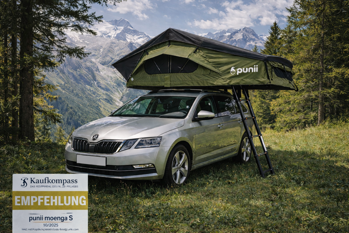 Das moenga L ist die ideale Wahl für alle, die unterwegs mehr Platz möchten – ohne auf Flexibilität zu verzichten. In unter fünf Minuten aufgebaut: Leiter ausziehen, Zelt entfaltet sich automatisch. Innen wartet eine 7 cm dicke Matratze für erholsamen Schlaf, dazu praktische Innenbeleuchtung und cleverer Stauraum.