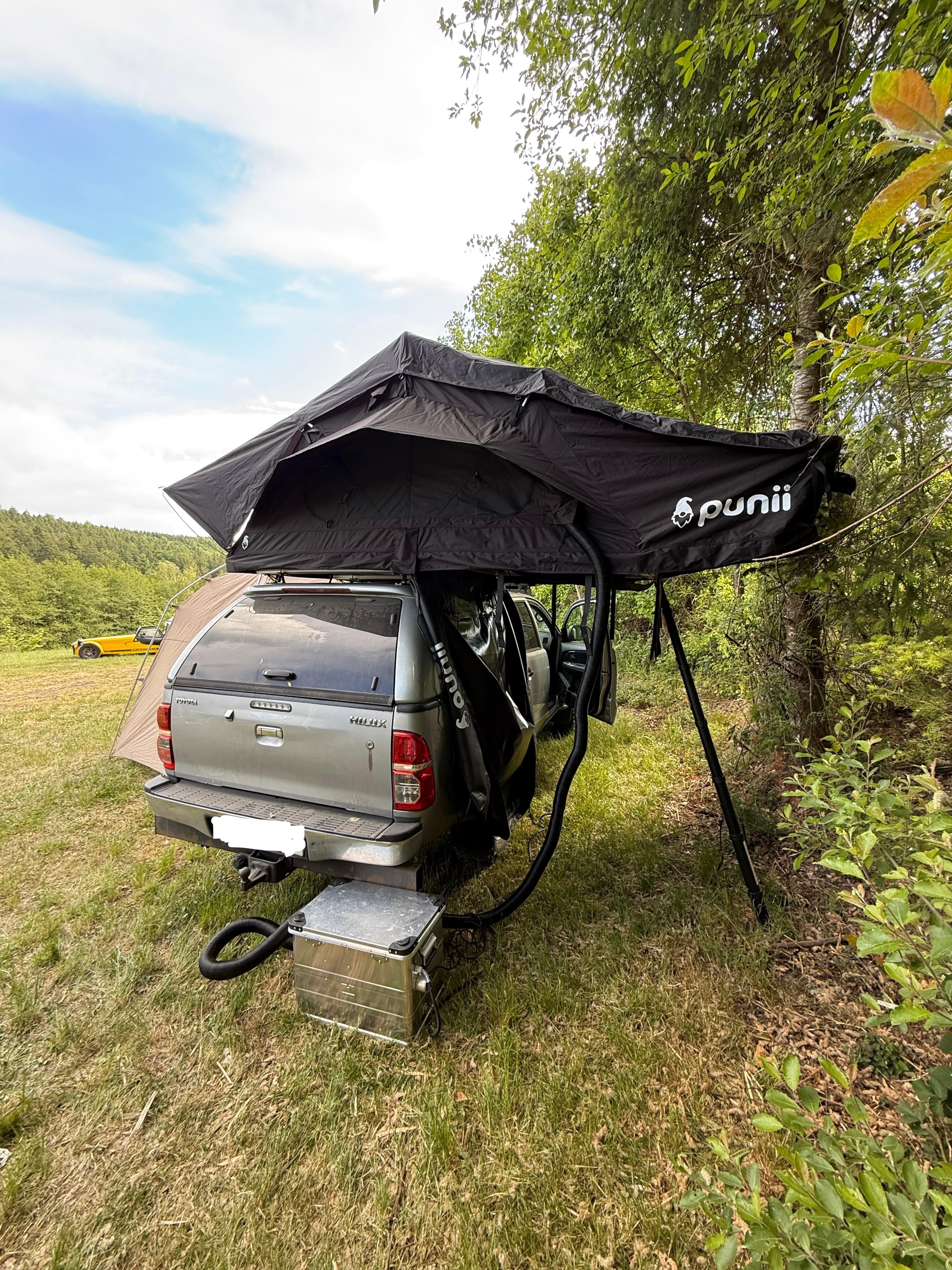 Seit 14 Jahren sind wir in Dachzelten unterwegs. Wir haben unser Traumzelt gebaut. Mit Vollaustattung