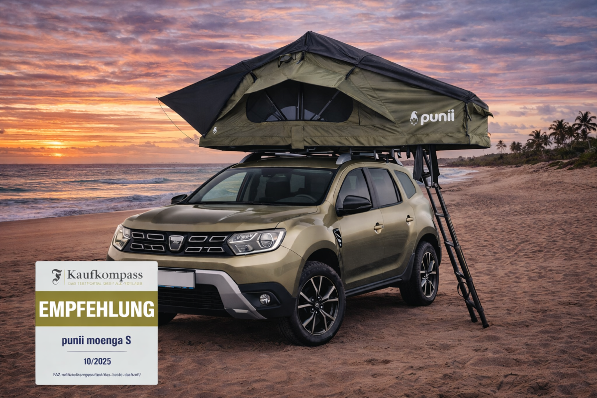 Das moenga S ist kompakt, schnell aufgebaut und ideal für Solo-Trips oder Reisen zu zweit. Die Teleskopleiter wird ausgezogen, das Zelt entfaltet sich in wenigen Minuten – ganz ohne Aufwand. Innen sorgt eine 7 cm dicke Matratze für bequemen Schlaf, während das wetterfeste Material bei Regen, Wind und Sonne schützt. Die integrierte LED-Beleuchtung bringt Licht ins Zelt. Mit einer Liegefläche von 140 cm bietet moenga S ausreichend Platz für ein bis zwei Personen – ideal für minimalistisches Reisen mit Komfort.