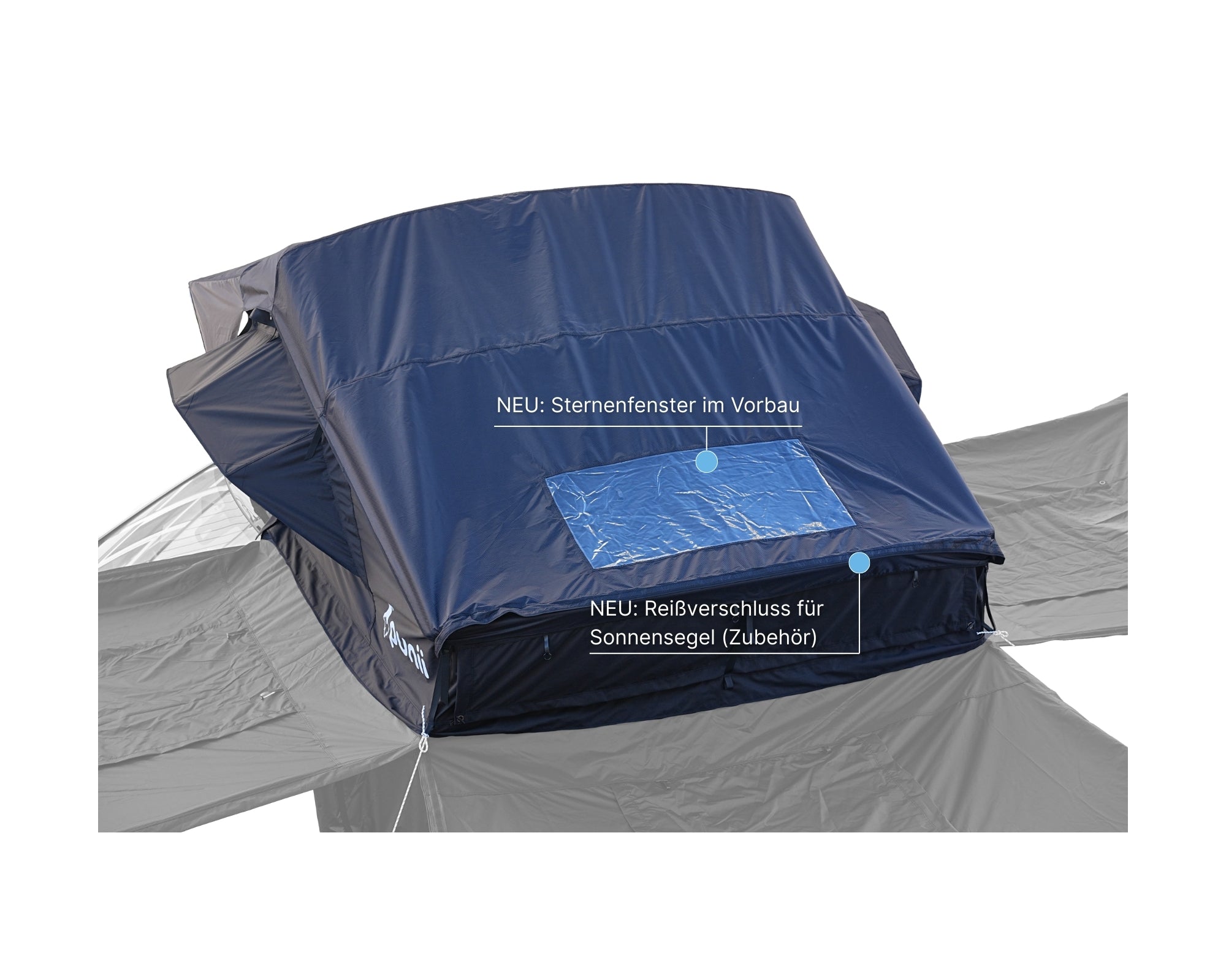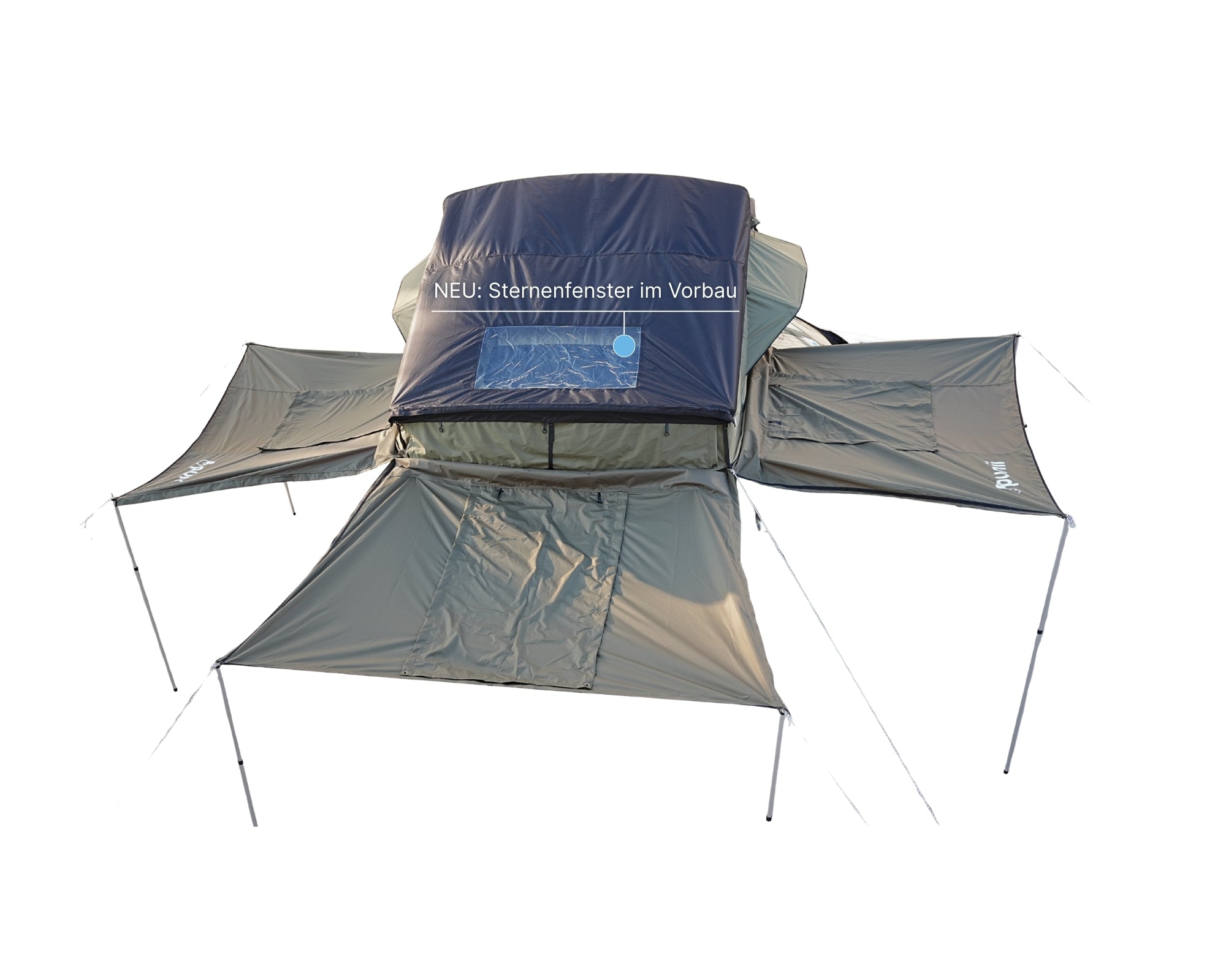 Jetzt neu: ein zusätzliches Sternenfenster sorgt für mehr Licht im Einstieg und Vorzelt (optionales Zubehör).