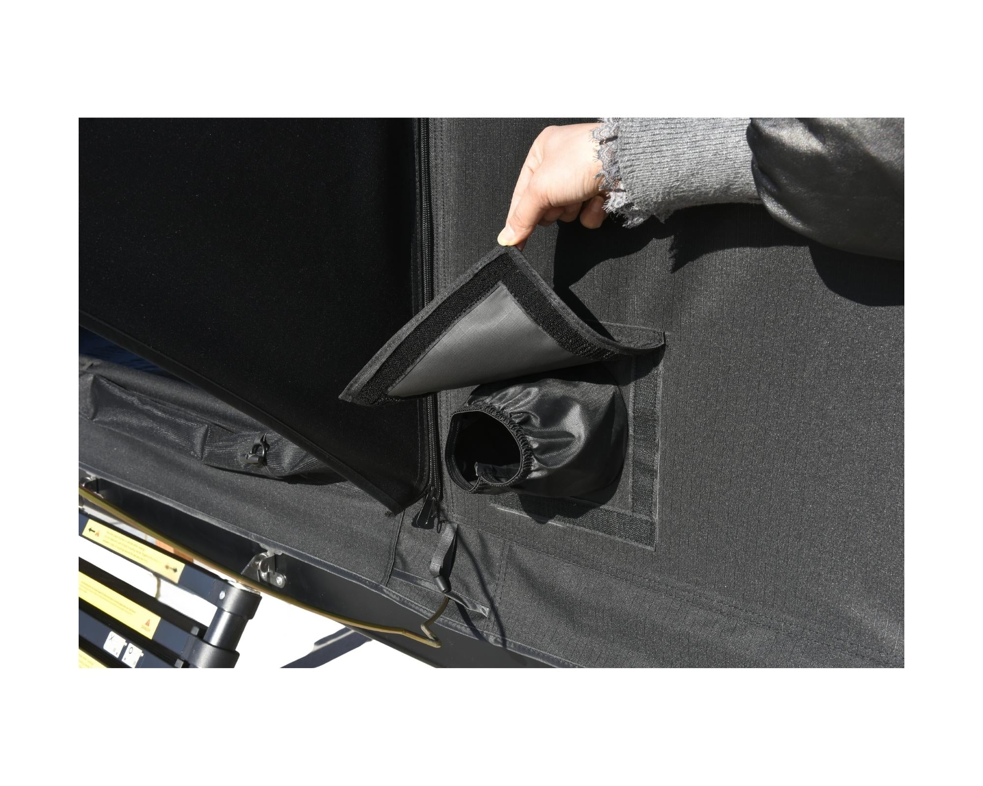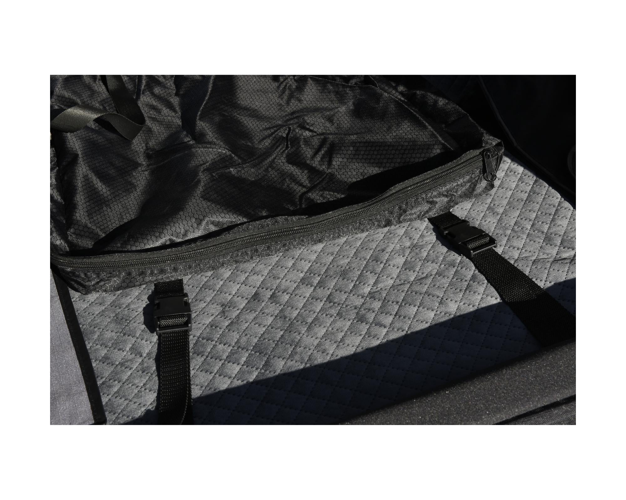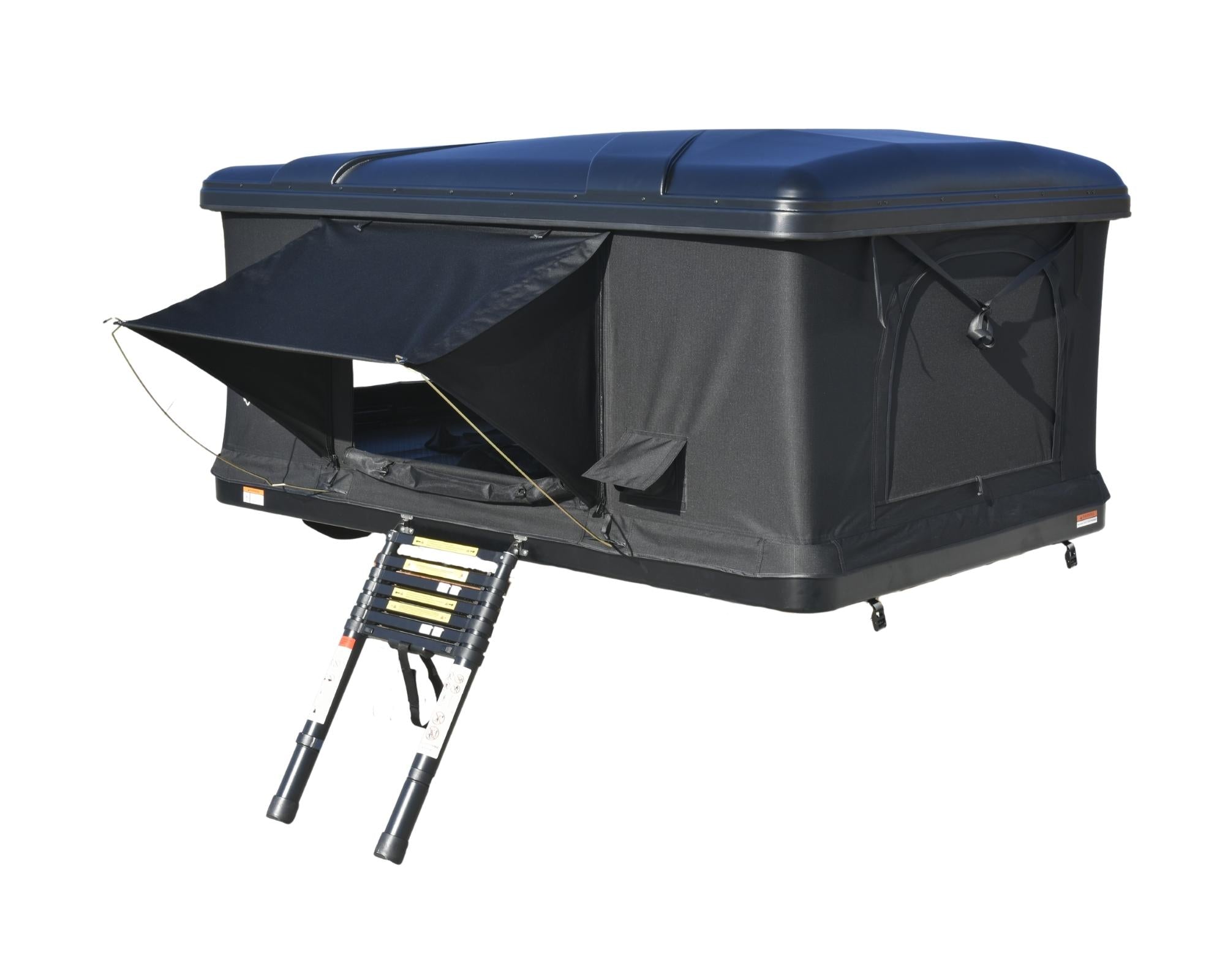 In unter drei Minuten einsatzbereit, auch alleine. Die robuste Hartschale schützt zuverlässig von oben, der seitliche Stoff hält Wind und Regen draußen. Drinnen wartet ein durchdachtes Setup für entspanntes Reisen – egal ob Wochenende oder längere Tour.